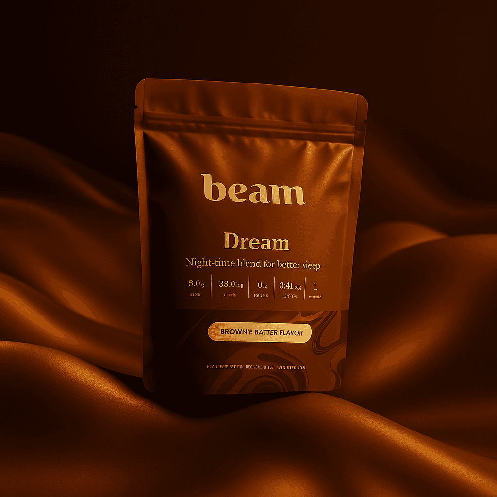 A wind-down drink, not a knockout punch. Beam Dream Sleep Powder (Melatonin-Free) is a creamy bedtime mix built around magnesium, L-theanine, GABA, reishi mushroom, and apigenin, aimed at taking the edge off pre-sleep stress without relying on melatonin or heavy sedatives. It’s vegan, gluten-free, non-GMO, dairy-free, and third-party tested, which is good from a quality and tolerance standpoint.